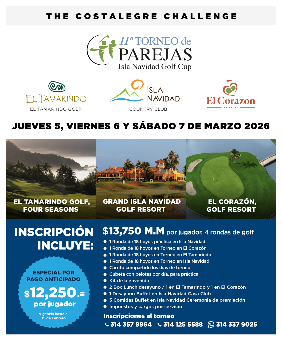 Para informes y reservaciones, por favor mande un correo electrónico a progolf@islaresort.com.mx